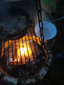 Gemeinsam bereiten wir eine Gemüsesuppe mit Wildkräutern vor. Doch erst muss das Feuer gemacht werden, und die Vorbereitungen für das selbstgebackene Brot! Anschließend essen wir gemeinsam am Feuer unsere selbst gekochte Mahlzeit!